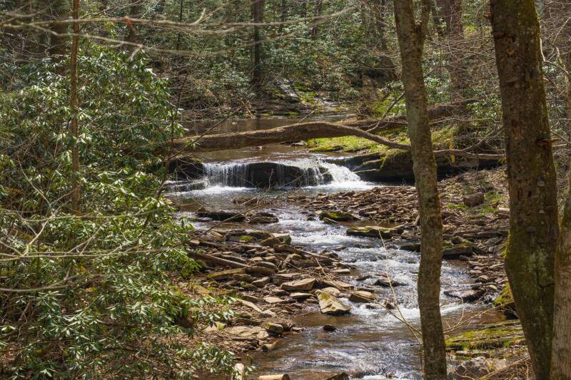 Many of the trails follow a stream, such as the one that runs alongside Big Run.